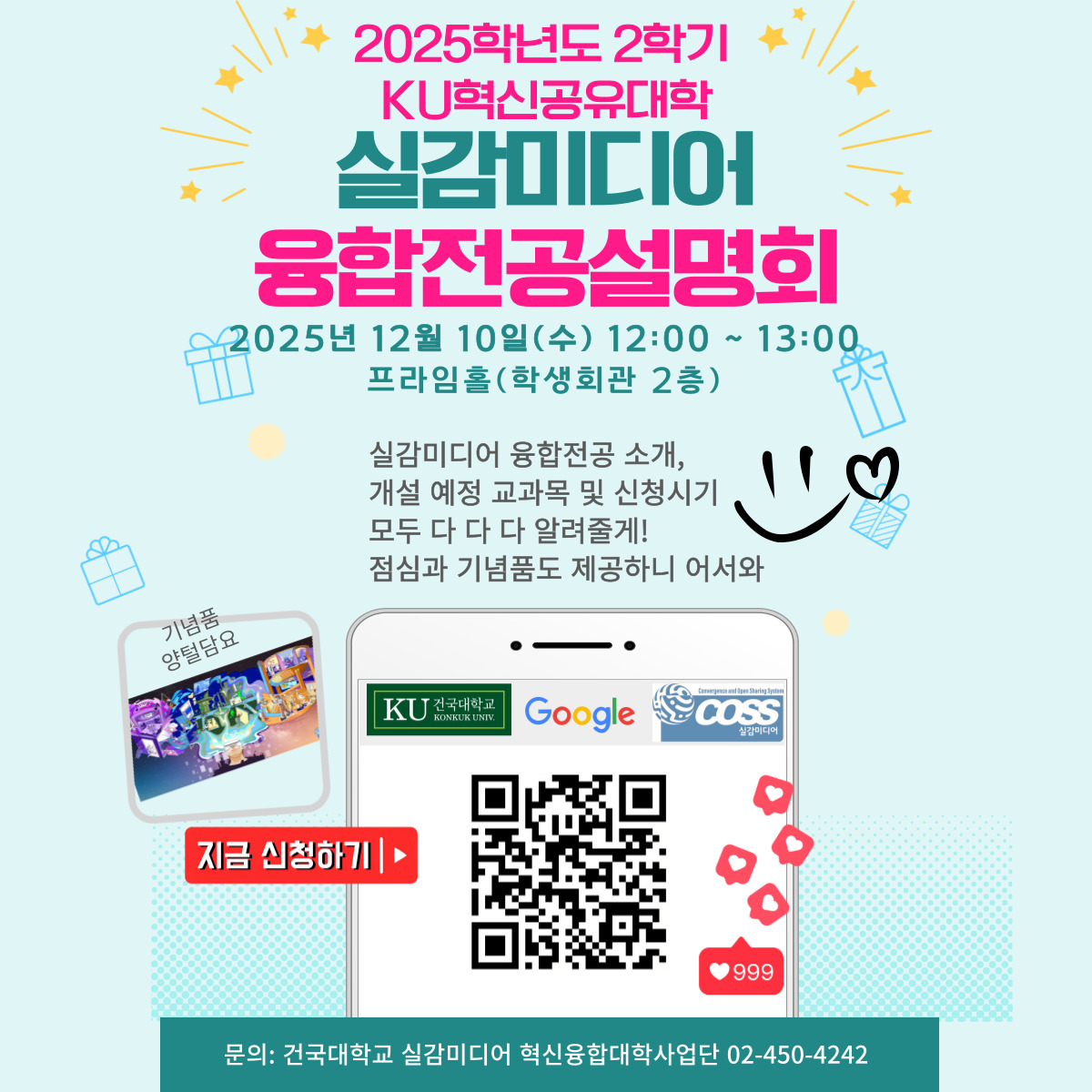 2025학년도 2학기 KU혁신융합대학 실감미디어 융합전공 설명회 개최 안내